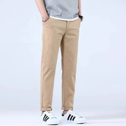 2024 Breathable 98% Cotton Thin Soft Fabric Men's Casual Pants Male Korean Summer New Brand Jogging Work Straight Slim Trousers